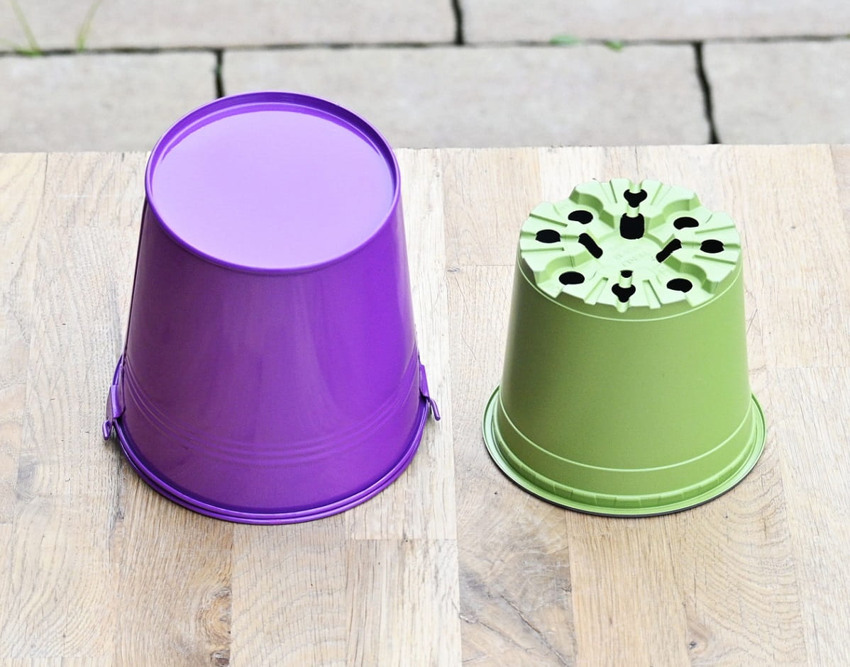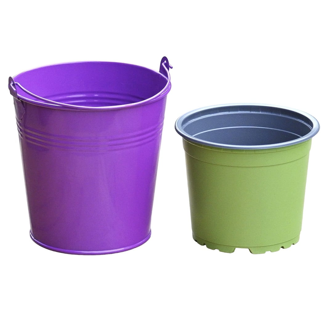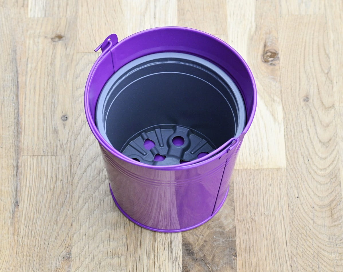 Doniczka metalowa WIADERKO 13cm FIOLETOWE - osłonka z wkładem uprawowym