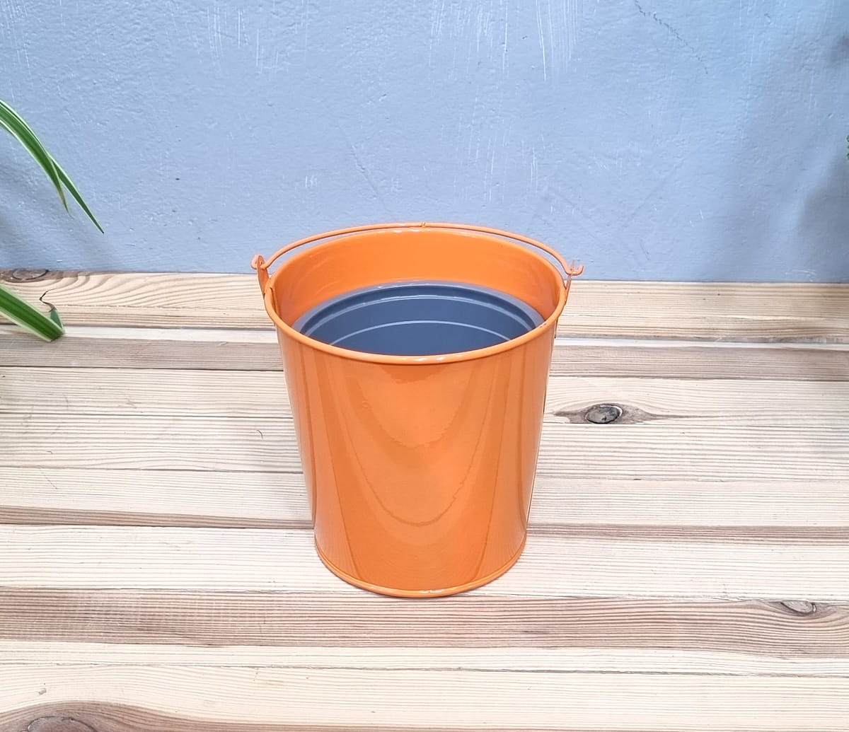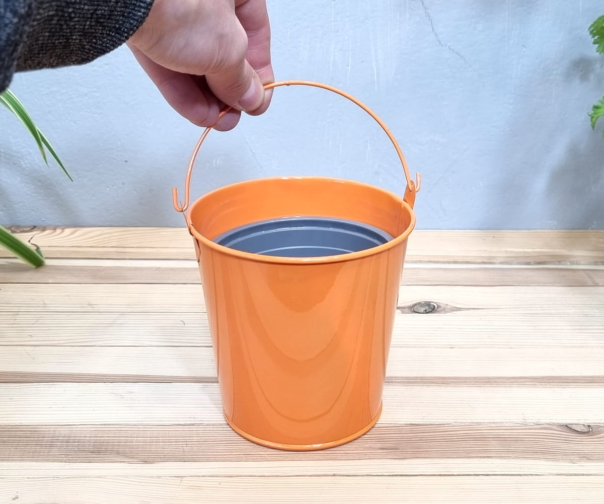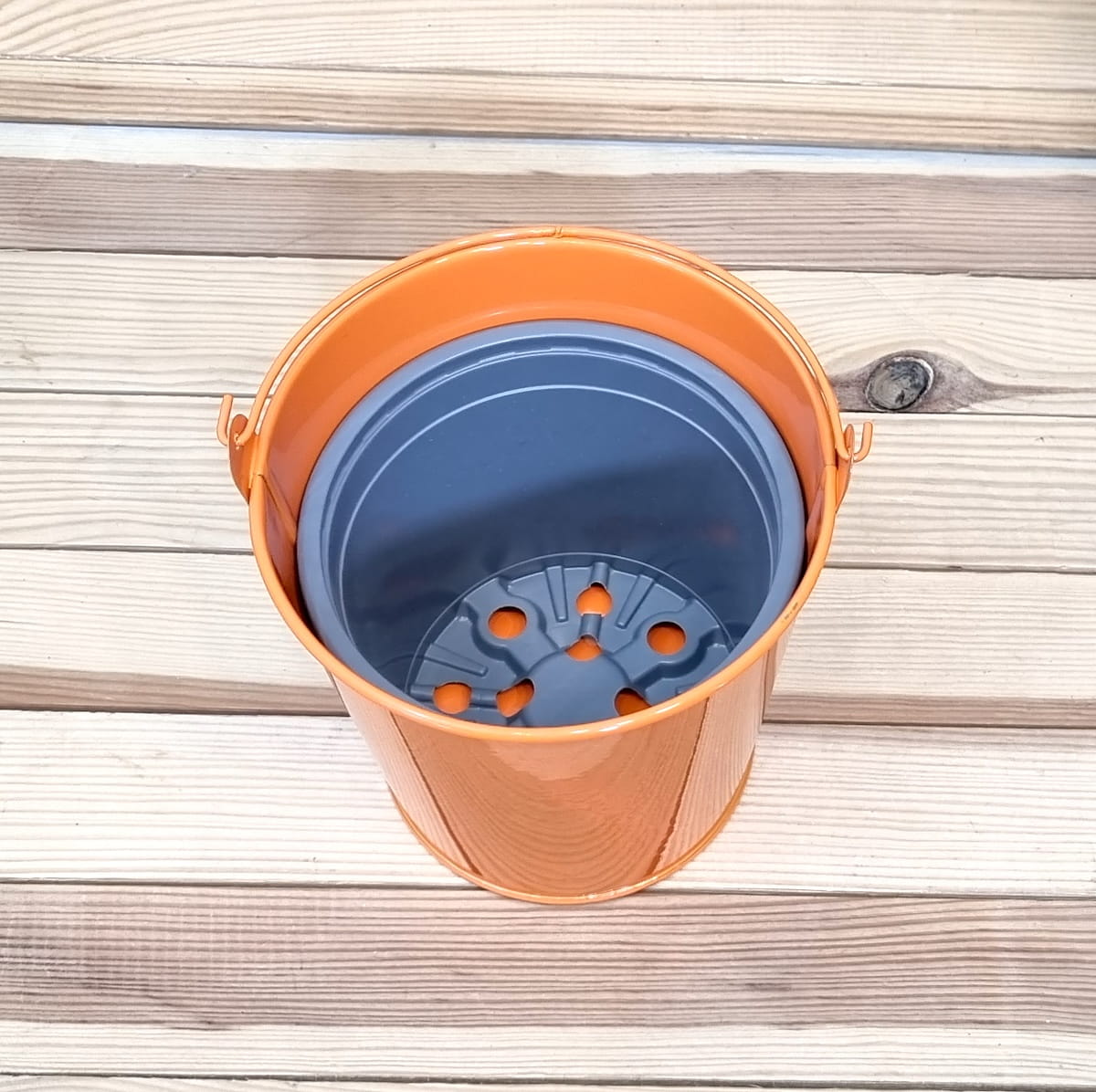 Doniczka metalowa WIADERKO 13cm POMARAŃCZOWE - osłonka z wkładem uprawowym