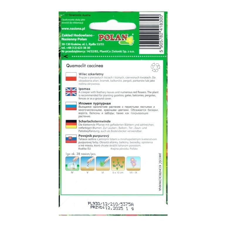 WILEC SZKARŁATNY Ipomea Powój czerwony nasiona 1g